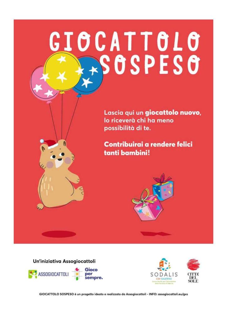 Nell’occasione verranno raccolti dei giochi che verranno donati a bambini individuati insieme ai servizi sociali del comune.
