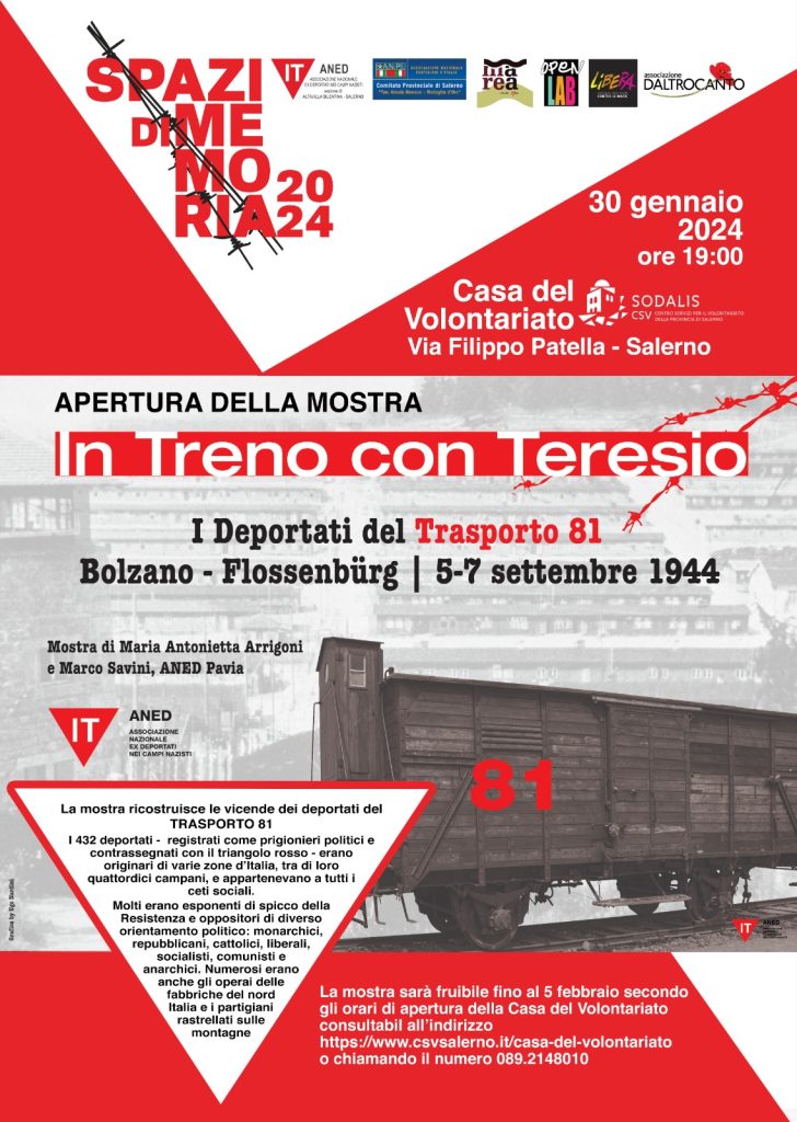 L’ANED Salerno, ARCI Marea, D’Altrocanto, ARCI Mumble Rumble, ANPI Salerno e Sodalis organizzano Spazi di memoria 2025.