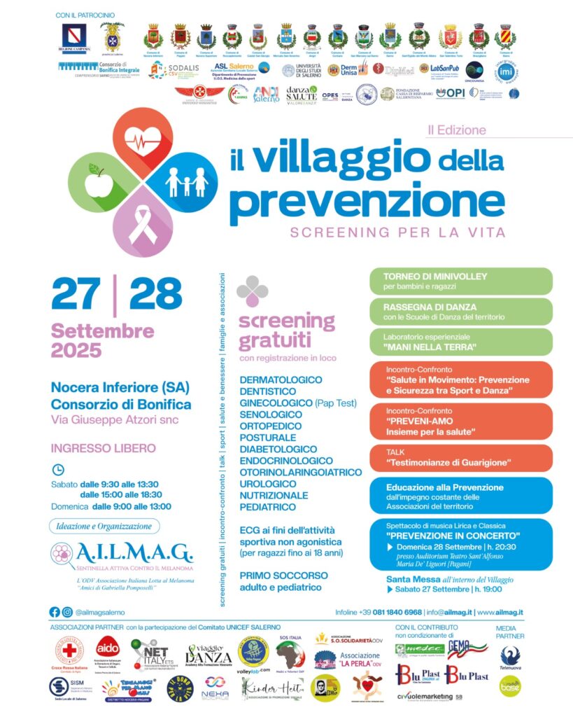 Il 27 e il 28 settembre 2025 partecipa anche tu a “il villaggio della prevenzione” e del benessere. Due giornate a ingresso libero dedicate alla prevenzione e all’informazione attraverso sport, screening e convegni.