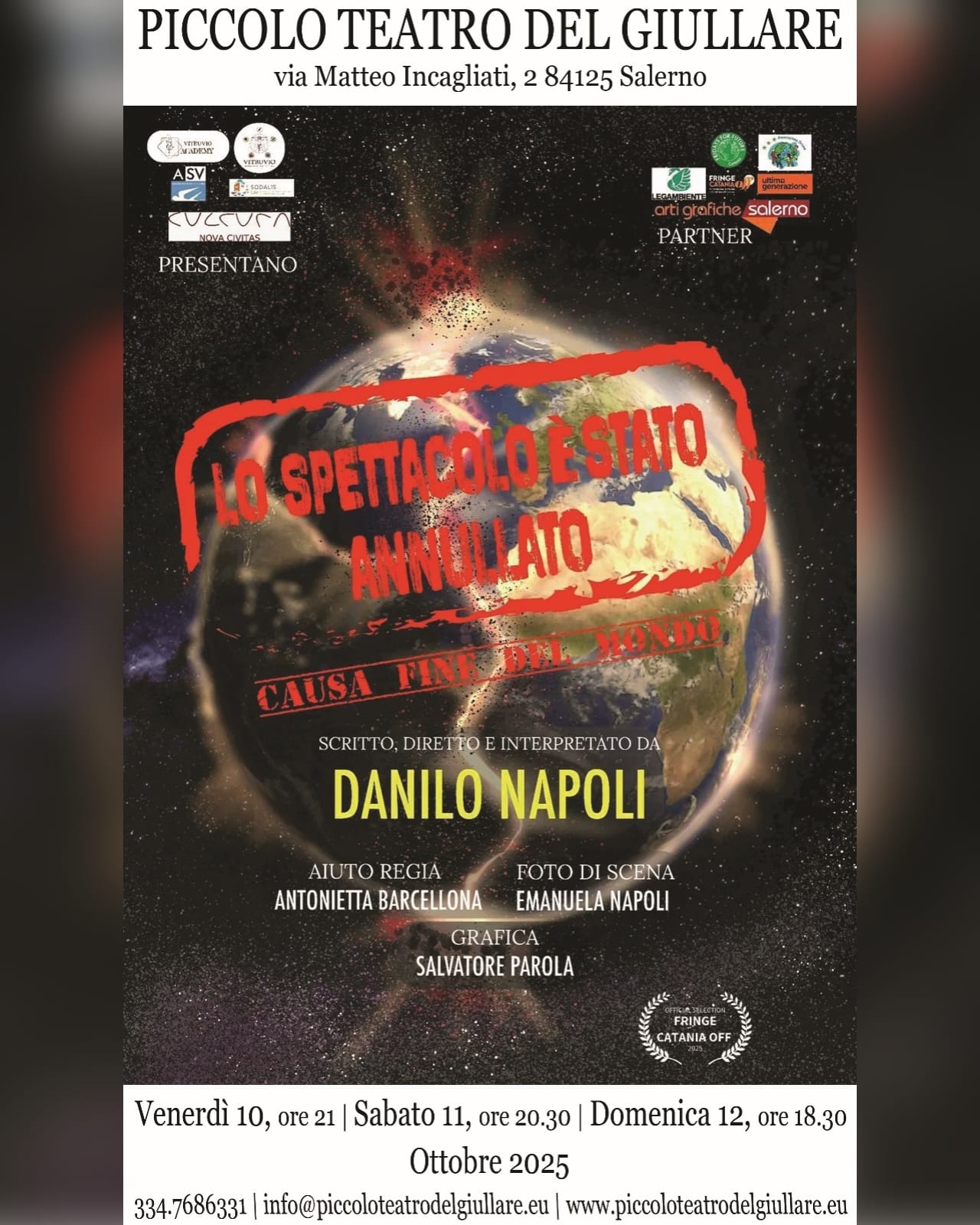 La produzione vede la collaborazione di Antonietta Barcellona come aiuto regia, con la foto di scena curata da Emanuela Napoli e la grafica di Salvatore Parola. L’evento è presentato da Ruzzafa e Nova Civitas, in partnership con l’Associazione Arti Grandi Salerno e il Fringe Catania OFF.