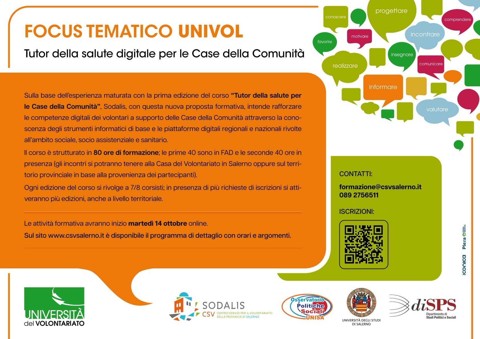 Sulla base dell’esperienza maturata con la prima edizione del corso “Tutor della salute perle Case della Comunità” [qui il report], Sodalis, con questa nuova proposta formativa richiesta dalle organizzazioni che hanno partecipato all’edizione precedente, intende rafforzarele competenze digitali dei volontari a supporto delle Case della Comunità attraverso la conoscenza degli strumenti informatici di base e le piattaforme digitali regionali e nazionali rivolteall’ambito sociale, socio assistenziale e sanitario.