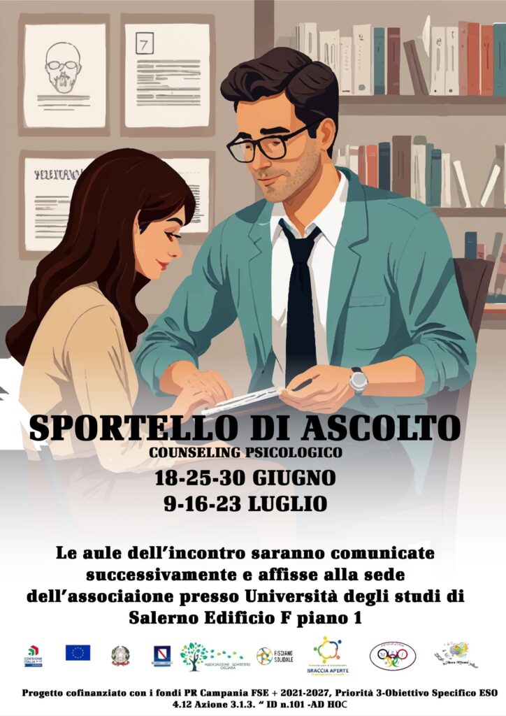 11 Giu Iniziative ETS, Promozione, orientamento e animazione territoriale, servizi ai cittadini Sportello Gratuito di Ascolto e Counseling Psicologico all’Università 11 Giugno 2025 By mtncompany Sportello Gratuito di Ascolto e Counseling Psicologico all'Università di Salerno per la Comunità Prende il via un importante servizi... Continua a leggere