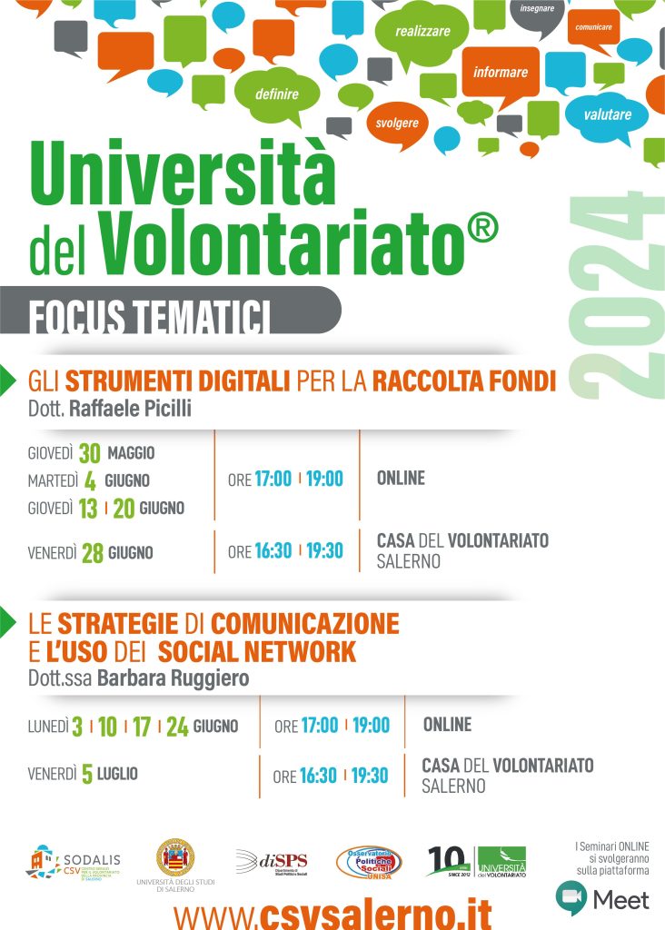 14 Mag formazione cittadini, Formazione ETS, iniziative, servizi ai cittadini, servizi alle organizzazioni, univol cittadini, Vita associativa Focus tematici di giugno 14 Maggio 2024 By alfredo Nell'ambito dei focus tematici di UNIVOL proponiamo il corso Gli strumenti digitali per la raccolta fondi. Luogo, data e ora Argoment... Continua a leggere