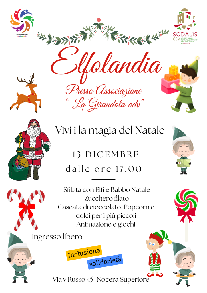 26 Nov iniziative, MAN, notizie, Promozione, orientamento e animazione territoriale, servizi ai cittadini, Vita associativa Elfolandia 26 Novembre 2025 By alfredo Elfolandia: La Girandola ODV e Sodalis portano Inclusione e Magia a Nocera Superiore con le MAN 2025. Il Natale si accende di magia e s... Continua a leggere